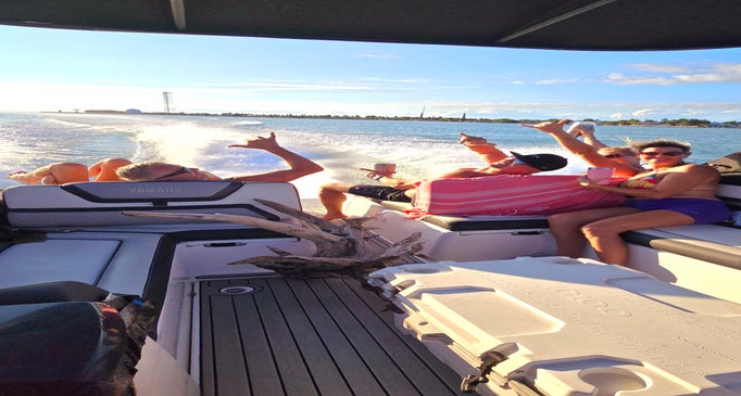 The Yamaha 275SE is a SUPER CLEAN 28-foot jet boat with tons of room for all. Its a perfect blend of luxury and performance.